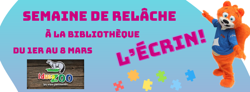 ACTIVITÉS POUR LA SEMAINE DE RELÂCHE À LA BIBLIOTHÈQUE L’ÉCRIN